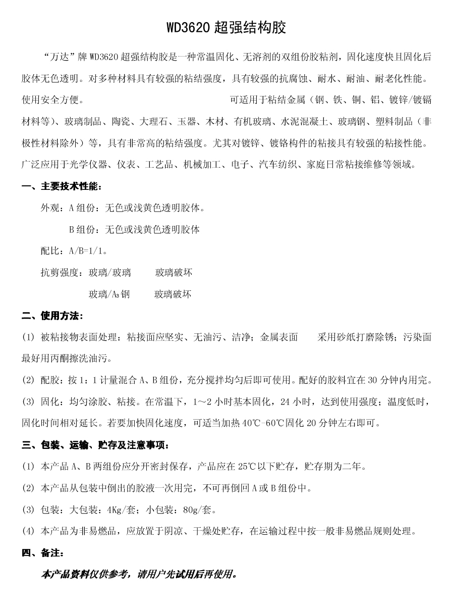 WD3620 全透明環(huán)氧樹脂結(jié)構(gòu)膠