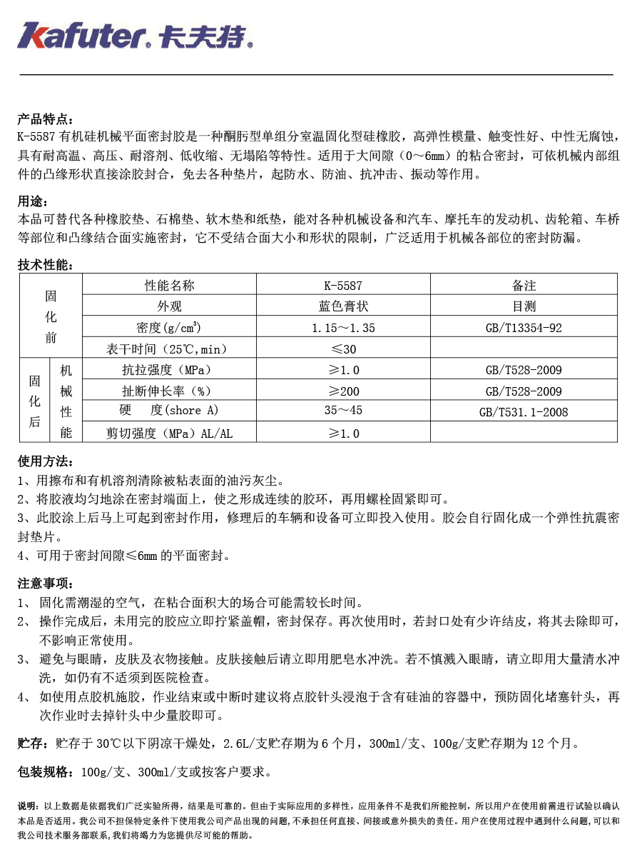 K-5587藍色有機硅免墊膠