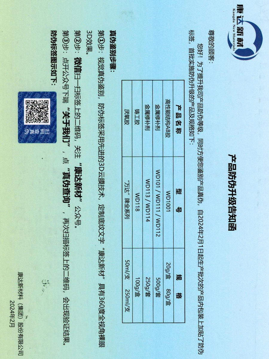 萬達(dá)牌產(chǎn)品防偽升級告示函